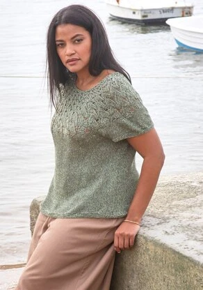 stockinette stitch, then switch to the yoke’s lace pattern. Berroco Chai has light and