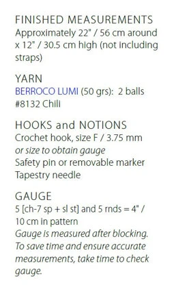 soft metallic. The bag is worked from the bottom up in the round, and the straps