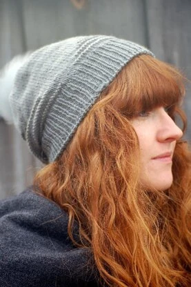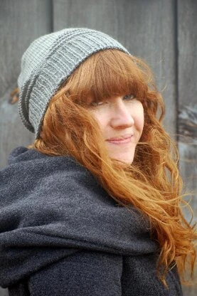 A classic and clean beanie, London Fog has a touch of graphic architecture in its gradual diagonals and purl ridges. Knit in the round, the simplicity of the hat will make a favorite.