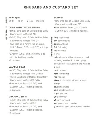 Debbie Bliss Rhubarb and Custard set is a sweet and classic collection for toddlers knit in Baby Cashmerino. The collection features a slip stitch waffle stitch jacket, a trellis lined coat, a grandad pullover with side notches, and a must-have bonnet. This soft blend from Debbie Bliss Baby Cashmerino is perfect for baby and children’s items or anything you want blissfully soft fabric against the skin. Baby Cashmerino is machine-washable, so no need to fear knitting something for the new baby!