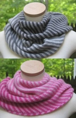 The Endless Ombre Cowl is the perfect use for the Jade Sapphire Mini Ombre Collection Kit, a set of 6 mini-skeins in gorgeous, gradient shades. This striped cowl is worked lengthwise on the diagonal and joined with a three needle bind-off. Instructions for converting the pattern into a scarf are also included.