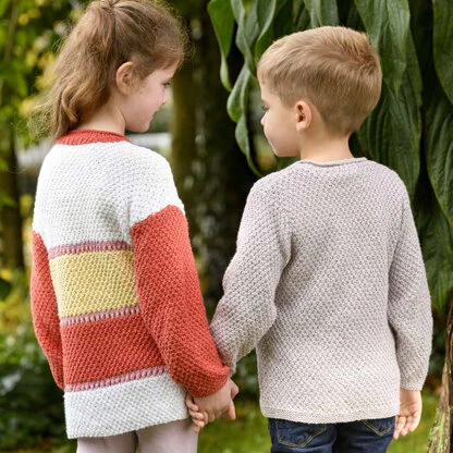 Juniper Moon Farm Ellie is a cute and comfy pullover for kids with options for a single color set-in sleeve or a four color drop-shoulder fit. Either choice will be a home run with special kids in your life knit in Juniper Moon Farm Cirrus, a lightweight chainette yarn made from soft Mako cotton. With a debut palette of soothing neutrals and pastels, it’s easy to mix and match shades for multicolor projects in Cirrus. This versatile sweater will also work up beautifully in multicolor Cirrus Rainbow on its own or paired with solid Cirrus! Ellie is knit flat in pieced form the bottom up and seamed, giving structure to the finished garment.