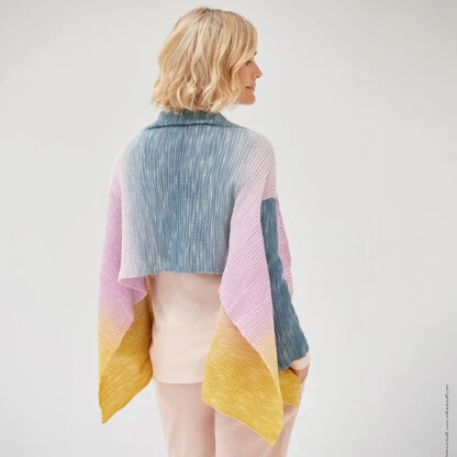 The Lana Grossa Crochet Jacket is a freeform and flowy layer that lets the beautiful colors of Cool Wool Lace Hand Dyed take center stage, fading from one shade to another. Simply shaped and simple to crochet, this open cardigan is worked flat from the outside edges in towards the center back where the two pieces are crocheted together. Tapered sleeves are also worked side to side and are set in and seamed during finishing. Cool Wool Lace Hand Dyed is a lightweight Merino wool yarn that’s soft to the touch and adds gorgeous ombré-style color fades to your projects as you work.Â
