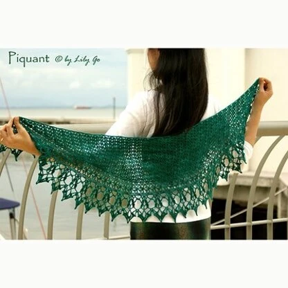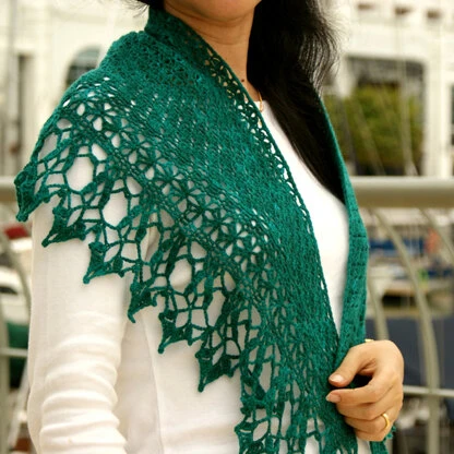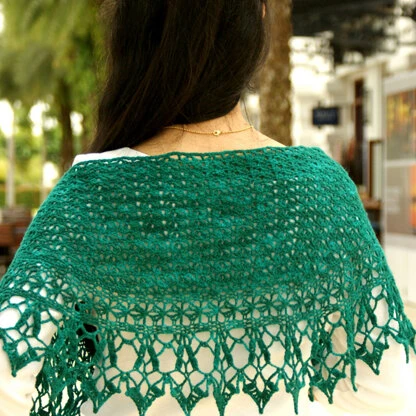 crescent-shaped, crocheted shawl worked in one piece. This shawl has a very