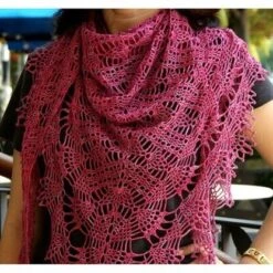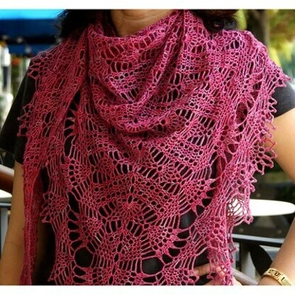 Proud as a Peacock from Lily Go is a deep triangular shawl, a crocheted showstopper! This exceptional shawl is crocheted from the neck down and can be adjusted very easily depending on the amount of yarn you have. The crochet instructions are charted and written out.