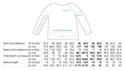 Finished Measurements: Shown in size 34” with the suggested 0–3”