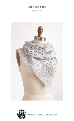 Manos del Uruguay Conarroe designed by Jen Lucas is a fabulous crocheted cowl that can be sewn into a tubular cowl, or sewn into the asymmetrical cowl shown, or not sewn to create a scarf. There are options! Crocheted in Manos del Uruguay Alegria, a soft, springy sock yarn hand painted in a celebration of bright color. Made of a blend of superwash merino for easy care and polyamide for durability, Alegria will surely bring you joy with its incredible softness and unique colors, from neon to neutrals.