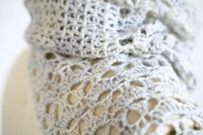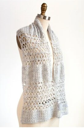Gauge: 8 two-dc groups from rows 2–10 of pattern = 4”; rows 2–10 of pattern = 3” high