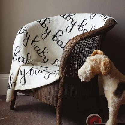 Rowan Bambino from Rowan At Home is a lovely blanket knit in two shades of Pure Wool Superwash Worsted. The words “baby” is repeated across the blanket, and this knitting pattern is suitable for the more experienced knitter.  Rowan Pure Wool Superwash Worsted is the ultimate “work-horse” yarn! In 100% superwash wool and worsted weight, this yarn is an easy choice for everything from blankets to sweaters to accessories—and with the astounding range of colors, you really can’t go wrong. The intarsia “baby” is in chart form only.