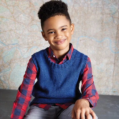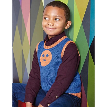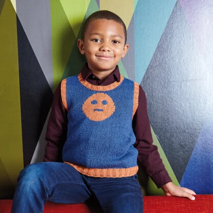 Rowan Emoji designed by Martin Storey is available in a two-color version with an emoji motif and a one-color alternative. This vest is a quick project to knit and a versatile wardrobe addition. Knit in Rowan Softyak DK blend of cotton, yak, and nylon that is incredibly soft and cuddly. The intarsia pattern is charted only.