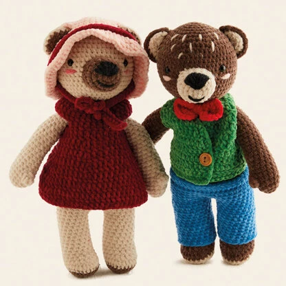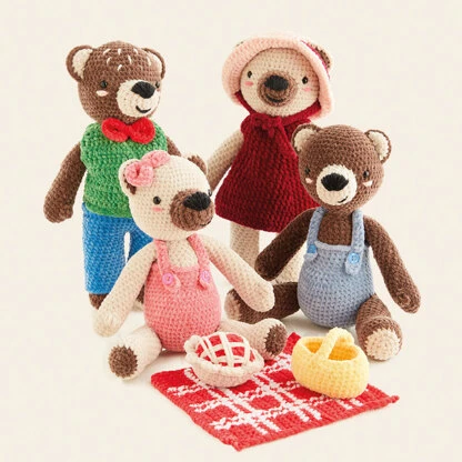 is mummy & daddy bear, teddy boy & teddy girl, picnic blanket, picnic basket, and a cherry pie. Velvety soft and plush, Sirdar Happy Chenille is perfect for