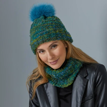 Simple to knit and bursting with bouclé texture, the Nyra Hat & Cowl from Stacy Charles Fine Yarnsis a fantastic beginner-friendly accessory set. Simple stitches shine in soft, bouncy Mariah yarn, and its multicolor shades dial up the fun in your finished projects too. The Nyra Hat is knit seamlessly in the round beginning with a ribbed brim and continuing in stockinette stitch while the cowl is knit flat in ribbing and seamed to finish. Choose the Nyra set for quick gifts or statement accessories in your own handknit wardrobe!