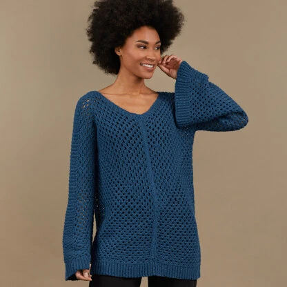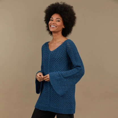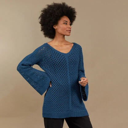 Breezy and beautiful, the Beatty Pullover from Tahki Yarns is a stunning crochet tunic that has nearly year round versatility. Layer this top over tanks and camis in warmer weather and swap them out to long sleeve tees and buttondowns when the weather turns cool. Two identical halves are worked in the round from the center out and folded to create the main body and sleeves. The sleeves are extended with a trendy belled shape and have a rib pattern at the cuff and running up to the shoulder. The body also gets extra length added and ribbed trims, with the halves joining together at the center front and back. Crochet the Beatty Pullover to add a gorgeous layer to your handmade wardrobe that will pair with leggings, dress pants, or dresses with ease and graceful style. Crochet instructions are written out and include helpful reference photos.