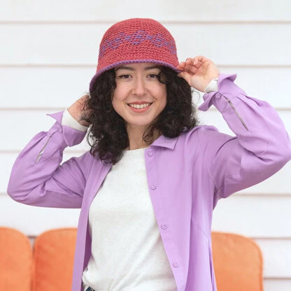 The Beachy Bucket Hat from The Fibre Co’s By Hook Collection II is a colorful and practical crochet project. This playful hat is worked in the round from the top down with back loop texture around the crown that transitions to tapestry crochet. Two strands of Luma yarn are held together throughout this project, making it work up quickly and giving you all of the benefits this yarn has to offer. Luma’s unique blend of Merino wool, organic cotton, linen, and silk is soft and comfortable for warm-weather wear. Channel serious seaside vacation vibes with the Beachy Bucket Hat! Tapestry crochet colorwork pattern is both charted and written out.