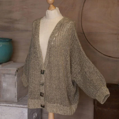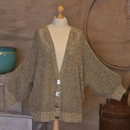 women’s boxy, oversized cardigan with roomy sleeves and a deep v-neck knit in