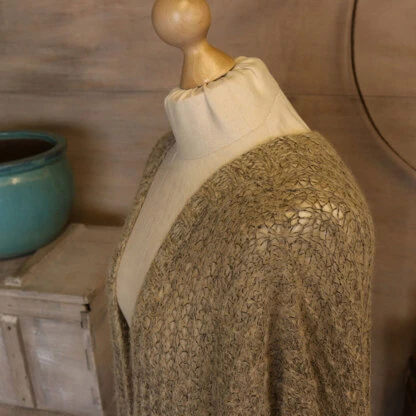 gauzy fisherman’s rib. The sweater is worked in one piece from the top down. The