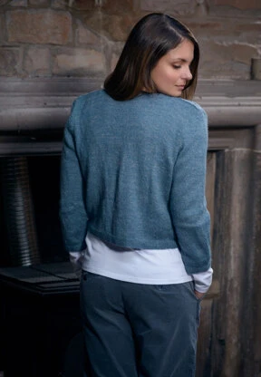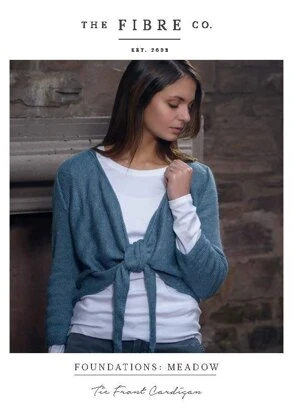The Fibre Co.’s Tie Front Cardigan is a sweet layering piece that wraps you in the beautiful fabric that Meadow creates. Soft shapes are created by the tie fronts, worked sideways from the main body of the garment. The back is worked from the bottom up; the fronts are then picked up along the sides and worked sideways. The sleeves are worked flat and seamed for stability.