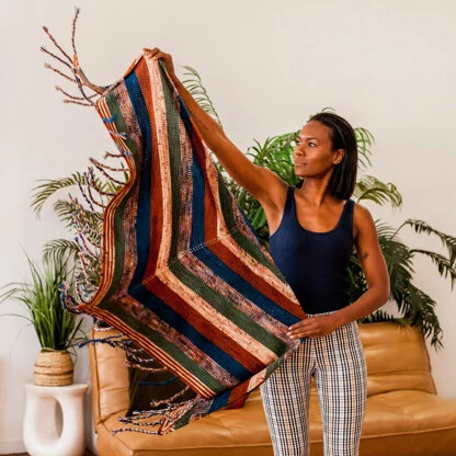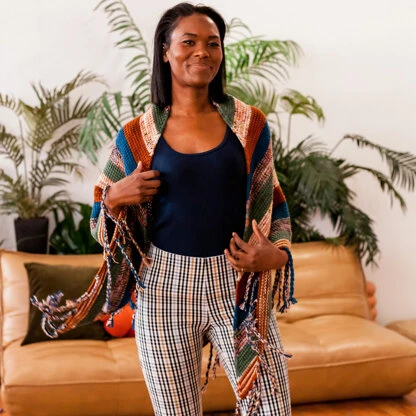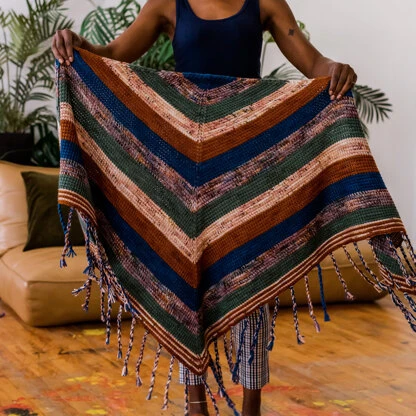 The Arvada Shawl from TL Yarn Crafts is a big, bold triangle shawl that’s bursting with color. This cozy shawl is perfect for wrapping up in on chilly days and it’s also a fun project to feature special hand-dyed yarns or your favorite color combos. The Arvada Shawl is worked seamlessly in Tunisian crochet from the top down with wide stripes of five colors. Narrow stripes and fringe provide a fun pop of flair in the border of the shawl and have it ready to toss onto your shoulders and go! This pattern includes links for Tunisian crochet techniques, making it simple for those new to the craft to be successful.
