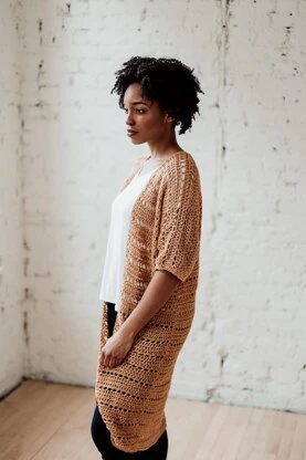 Channel beachy, boho vibes anytime with the TL Yarn Crafts Sandbar Cardi! This longline crochet cardigan has an open-front, elbow length drop-shoulder sleeves, and a gorgeous mesh pattern that adds that extra something to the finished sweater. Layer the Sandbar Cardi over tanks and jeans, summer dresses, or use it as a beach coverup and have a great balance of coverage and a stay-cool cotton feel. Destined to be a new favorite for summer and beyond, the Sandbar Cardi is crocheted flat in pieces from the bottom up and seamed.