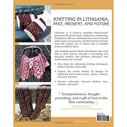 Lithuania is a knitter’s paradise—hand-knitted garments fill tourist street markets to overflowing, traditional crafts are celebrated at summer festivals and in open-air museums, and the first hint of winter turns the capital city of Vilnius into a veritable knitwear fashion show! Now, join knitting experts Donna Druchunas and June L. Hall in their journey through a fascinating and beautiful country, and discover Lithuania’s rich textile history for yourself. Dive deep into Lithuanian knitting techniques, pattern stitches, and motifs; explore the stories behind 25 designs for traditional and modern accessories; and practice colorwork, textured stitches, lace, entrelac, and more! Softcover, 224 pages; Trafalgar Square Books