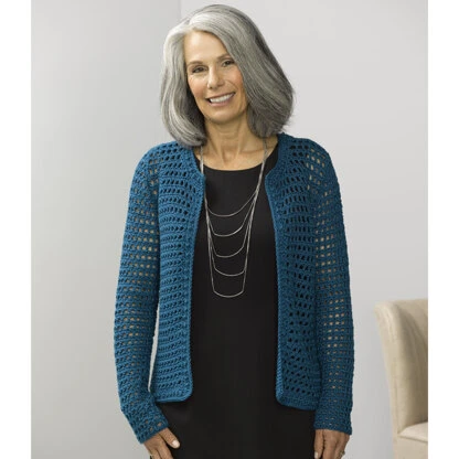 provide. This machine-washable yarn is excellent for this elegant jacket! The lace pattern is charted and written out.