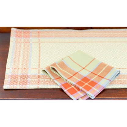 Weave Valley Yarns Summer Elegance Runner designed by Anita Thompson for summer, or any season. The 8-shaft overshot design, with its beautiful borders, is rich with color and pattern. Another nice touch is the backing, woven on the same warp, that gives a polished finish.