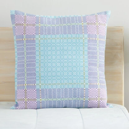 The intricate corners and borders of Valley Yarns Hyacinth Pillow makes a gorgeous frame for the overshot design. The pillow is woven in one piece and features an overlap and button on the back to make it easy to insert the pillow form. Welcome Spring!