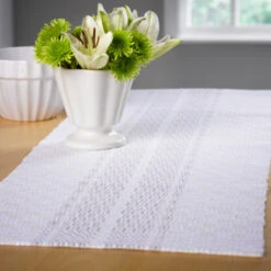 Dress up a table in your home with Valley Yarns Très Chic Runner in timeless neutrals! Combining our 3/2 cotton with our 16/2 linen, this elegant runner finishes with a beautiful shine will bring a touch of class to any room in your house.