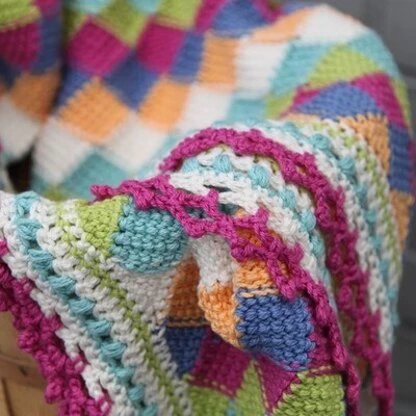 Playing Blocks Baby Blanket uses Tunisian crocheted entrelac to make a colorful and fun blanket perfect for a little one in your life. The machine-washable cotton blend yarn makes a great easy-care blanket that will be nice and soft to use as well. Be sure to check out the coordinating knitted Huggable Toys.