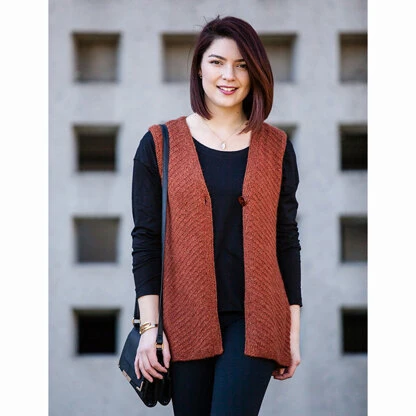 Valley Yarns’ Hinsdale Vest is a stylish layering piece that can be dressed up or down. It features an A-line silhouette, longer length, and a subtle diagonal texture pattern on front and back. Hinsdale is knit in Peru, a spectacular blend of baby alpaca, Merino wool, and nylon in a chainette construction.