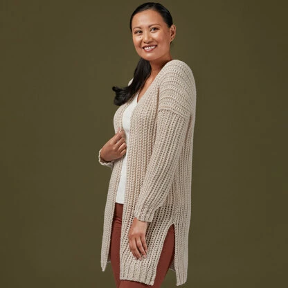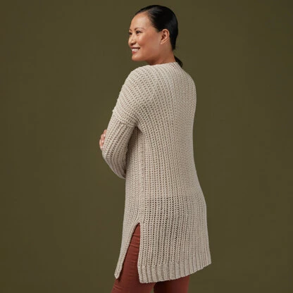 Valley Yarns Designer Series presents Campside Cardi, a lovely women’s crocheted open-front cardigan worked in Valley Superwash DK featuring a simple yet fabulous ribbed pattern. You would love wearing this perfect piece around a campfire to keep you warm and cozy. Campside Cardi is worked in pieces from side to side and then seamed. Our Valley Yarns Valley Superwash DK is made from 100% extra fine Merino wool, and it’s machine-washable.