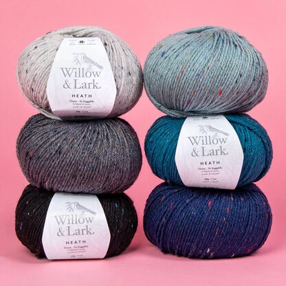 Willow & Lark Heath is a stunning tweed DK yarn with a luxurious, lofty twist and exceptional stitch definition. Embracing the essence of the countryside, Heath showcases a palette of ten earthy shades that mirror the textures and hues of nature. Its durability makes it perfect for home décor and accessories as well as garments and accessories for the whole family. Add a dash of cozy, rustic charm to your next project with Heath!